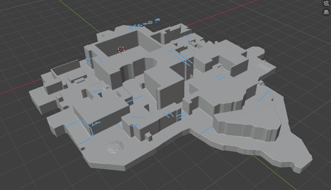 Pour commencer, j’ai décalqué les plans de la carte sur Blender, puis j’ai ajouté les petits éléments en me promenant dans le jeu, en prenant des mesures et en faisant appel à ma connaissance du jeu. Ensuite, j’ai dû faire un travail de simplification du modèle 3D afin de le rendre imprimable.